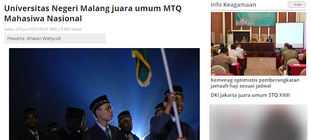 Ini Rahasia Universitas Negeri Malang Raih Juara Umum MTQMN 2015