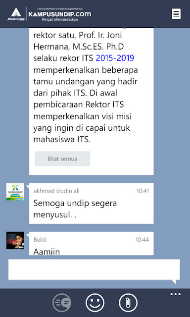 “Semoga Undip segera menyusul. .” tulisnya di grup LINE yang